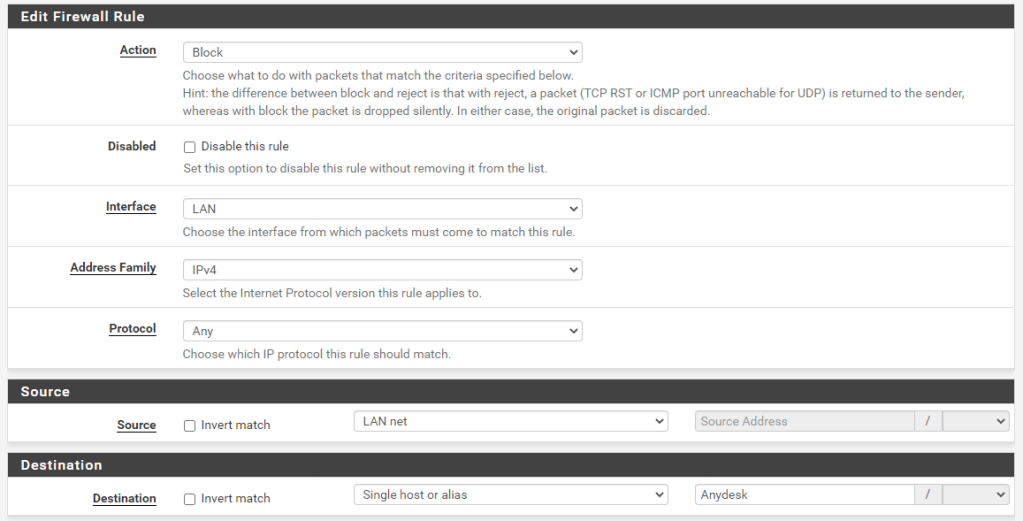 Salve a nova regra e pronto, Anydesk será bloqueado em sua rede.